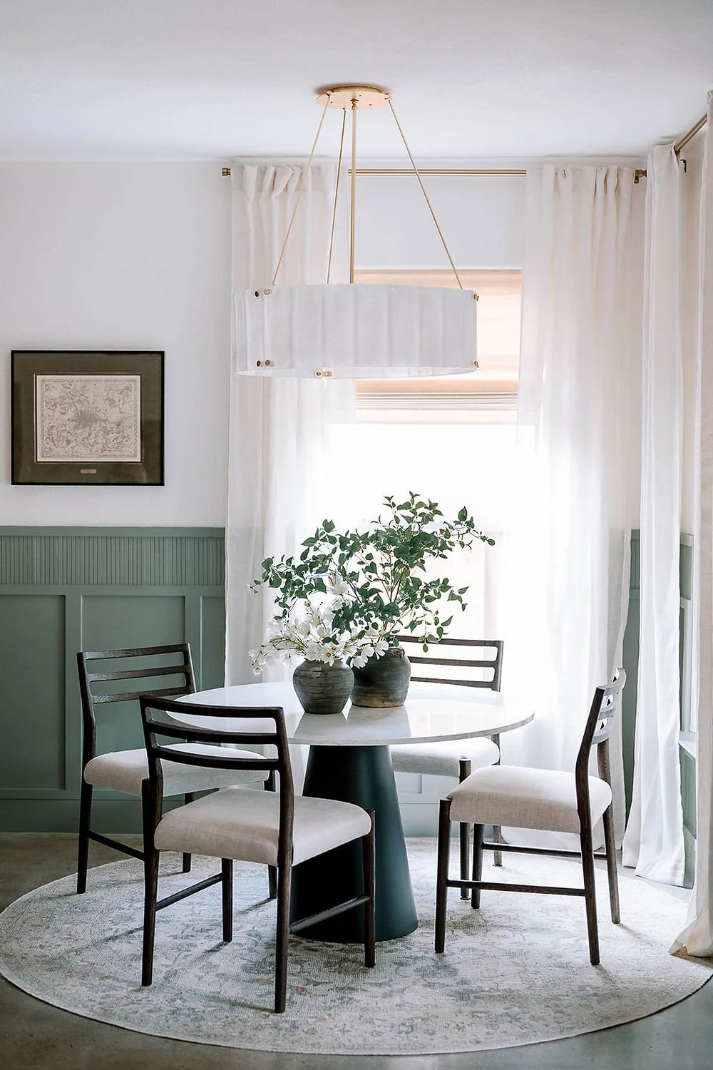 Additionally, we selected a low-pile, vintage-inspired rug—an ode to character and durability—to gracefully weather the bustling rhythms of family life. The chairs boast performance fabric, marrying sophistication with ease of maintenance, perfectly aligning with our client's vision.